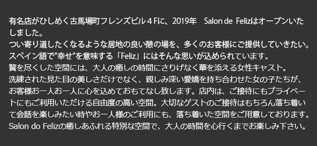 Salon de Feliz 〒760-0045 香川県高松市古馬場町8-11フレンズビル4F Mail info@salonde-feliz.com Tel 087-811-5055 随時、求人募 年中無休