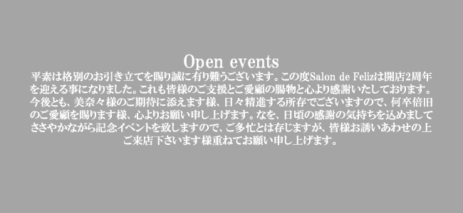 Salon de Feliz 〒760-0045 香川県高松市古馬場町8-11フレンズビル4F Mail info@salonde-feliz.com Tel 087-811-5055 随時、求人募集 年中無休 詳しくはお電話ください